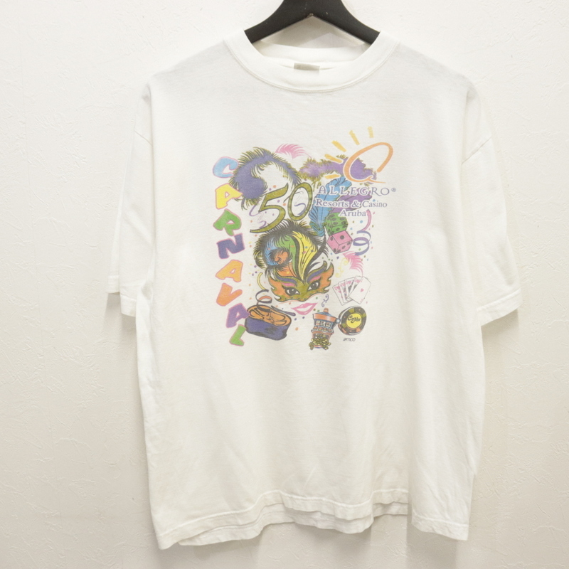 > j506 2000年代製 半袖プリントTシャツ■00s 表記XLサイズ 白 ホワイト カジノ トランプ アート アメカジ ストリート 古着 激安 希少 90s
