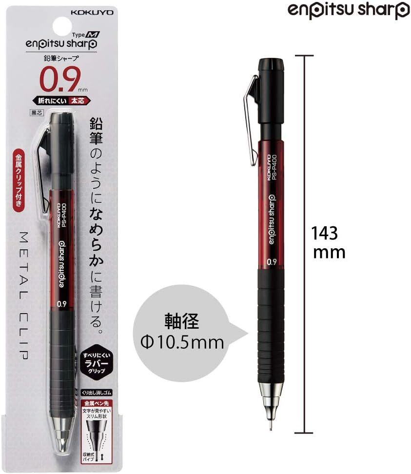 - コクヨ KOKUYO シャープペン 鉛筆シャープ TypeM ラバーグリップ メタルクリップ 0.9mm 赤 PS-P400R-1P /【メール便OK】