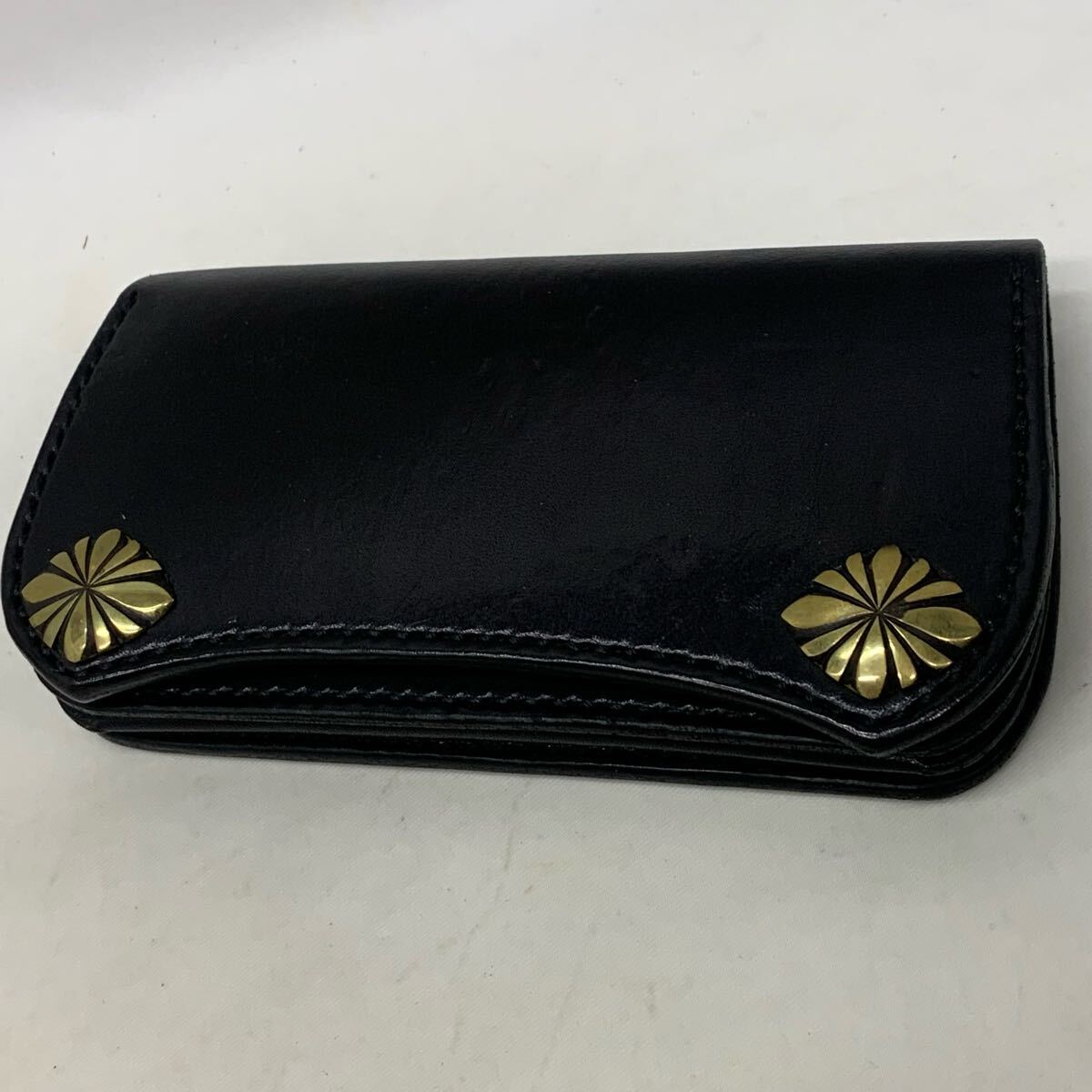 - コードバン 内側牛革 外側馬革 ロングウォレット トラッカータイプ 真鍮コンチョ 長財布 財布 ダークネイビー 日本製