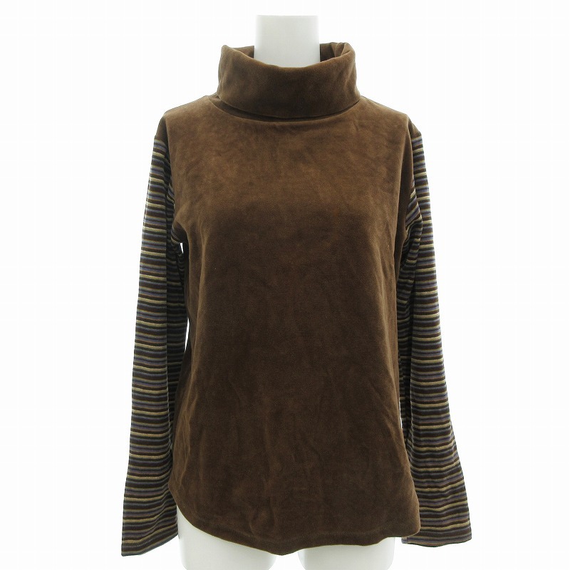 > パーソンズ PERSON'S 美品 カットソー タートルネック スリーブ切替 ボーダー 長袖 L 茶 ブラウン /AE レディース