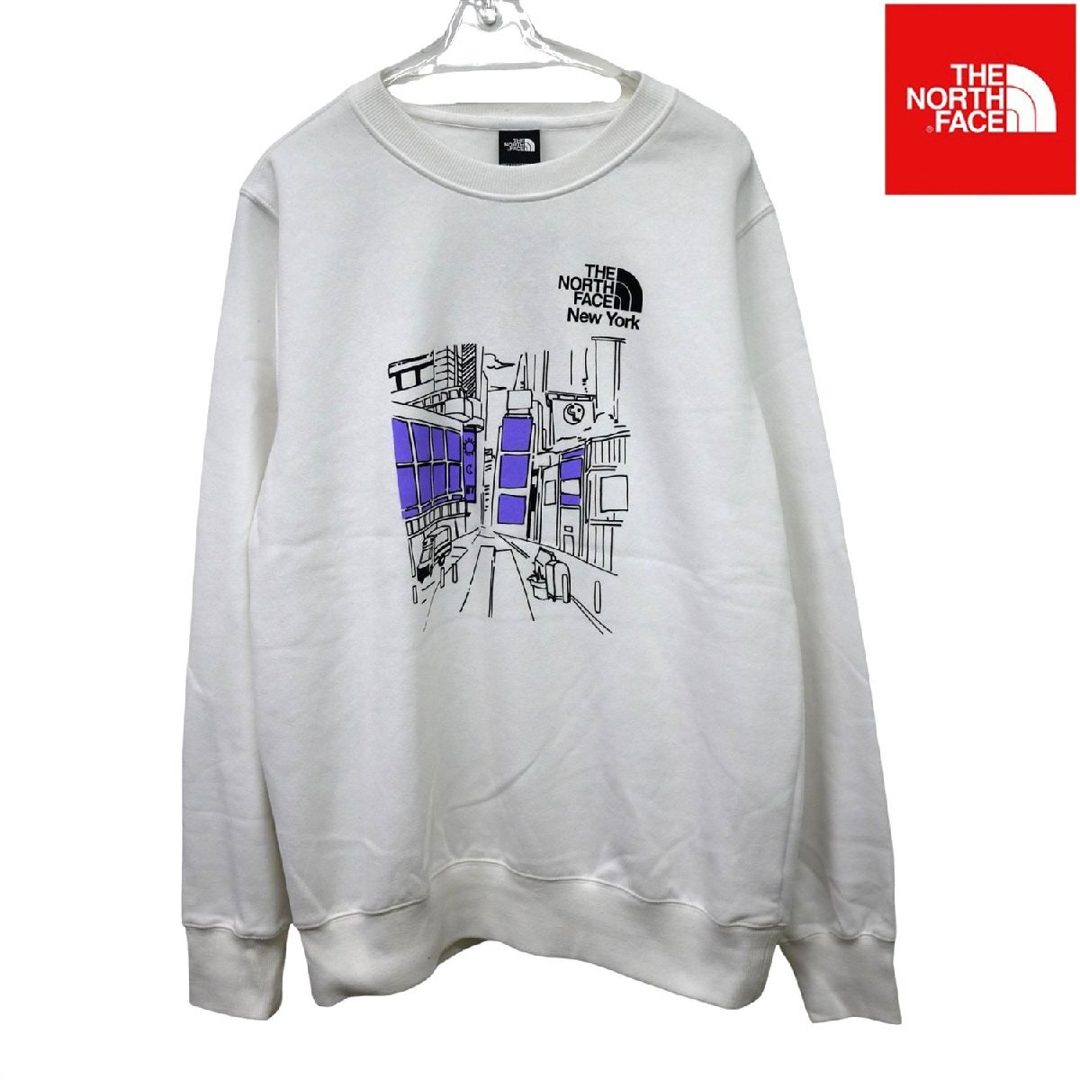 > US限定新品 ノースフェイス ハーフドーム New York city 裏微起毛 クルー スウェット トレーナー XXL 白 プルオーバー THE NORTH FACE/aa45