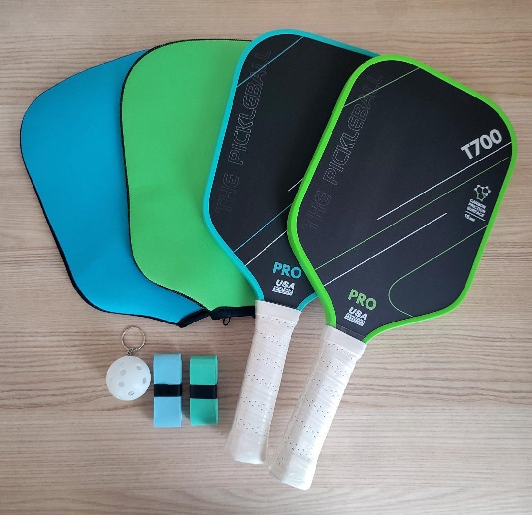 - 2個セット ピックルボール パドル T700生カーボン 緑色 青 カバー付き