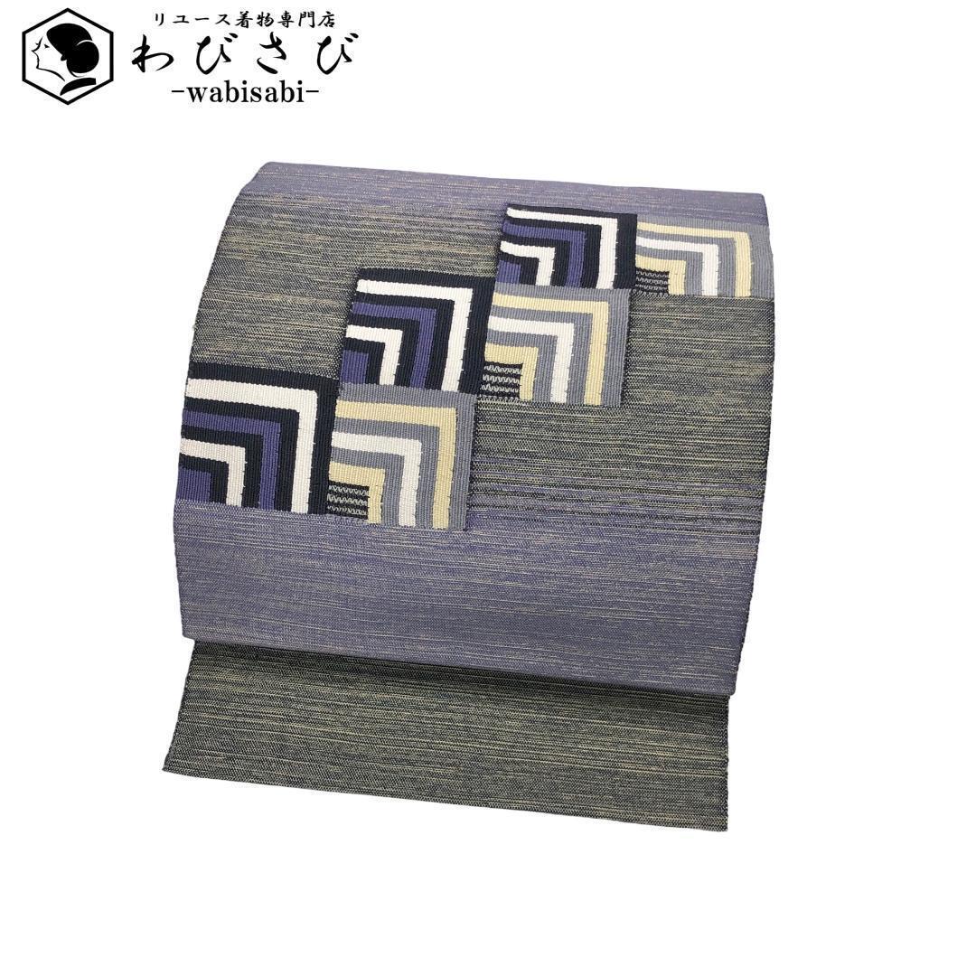 > 名古屋帯 四角模様 幾何学模様 金糸 藤納戸色 O-4949 着物 きもの kimono 和服 和装 中古 リサイクル着物 【送料無料】