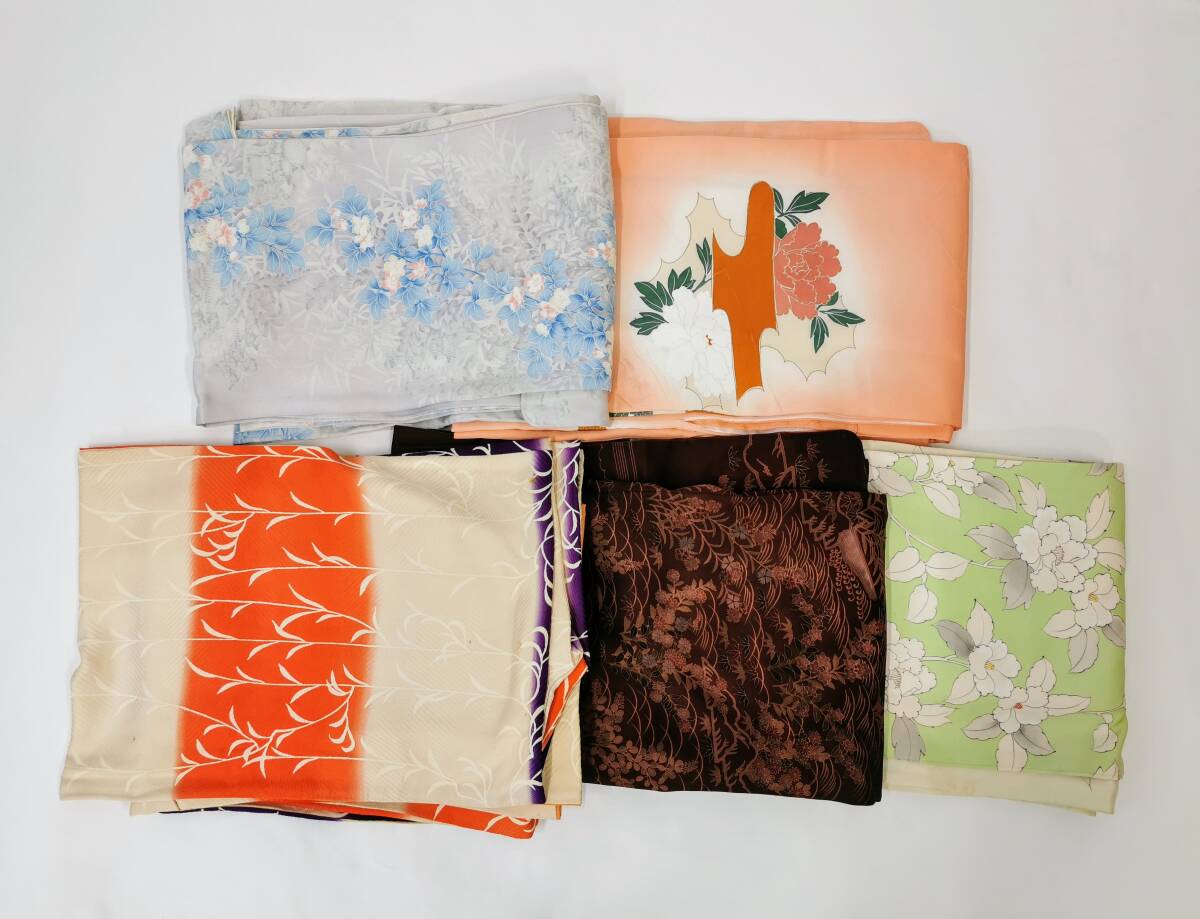 - 古着女性着物 5枚セット 和柄 カラフル ハンドメイド用 ★371