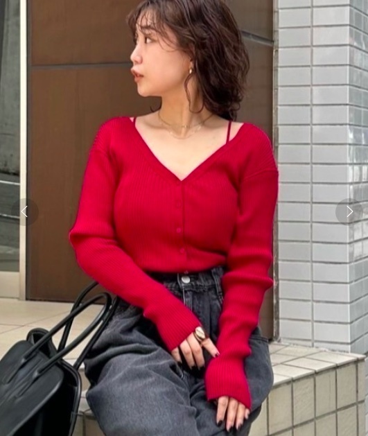 - ★春夏デート完売大人気【FRAY I.Dフレイアイディー】リブカーデ&ニットキャミアンサンブル★上品レッド★上品華やか美デコルテ★★