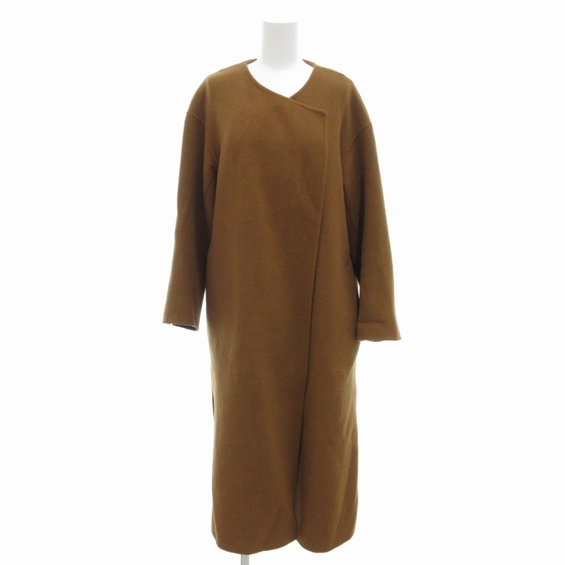 > スピック&スパン Spick&Span ビーバーフォールドラペルコート ロング丈 ウール ベルト付き 34 XS 茶 ブラウン 19-020-200-1020-3-0 /FT