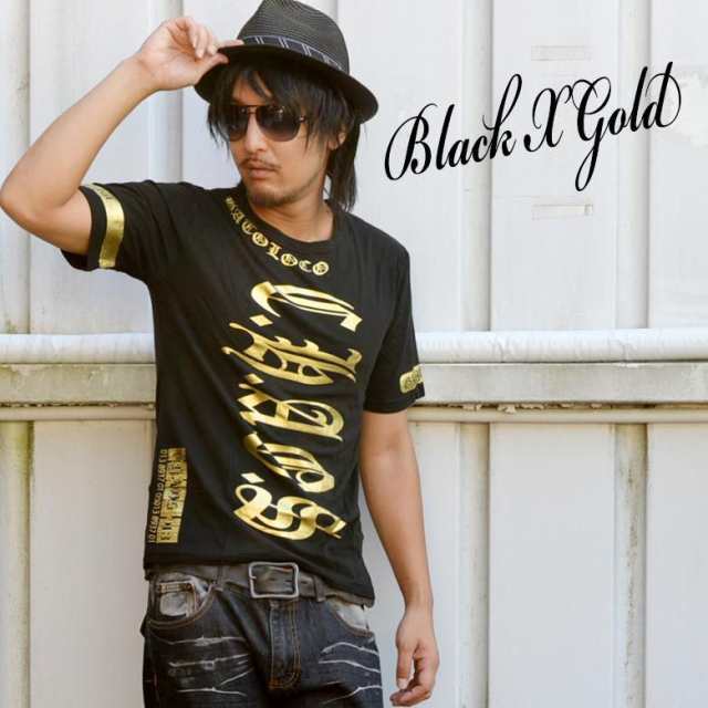 > CHAOS JAPAN半袖Tシャツ BIGプリントロゴ腕サイドバック英字半袖Tシャツ ch-ry-2005 新品ブラックxゴールド L