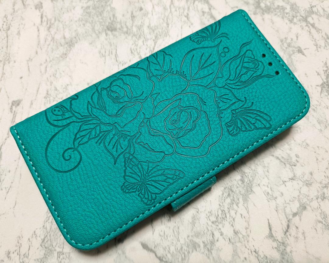 > iPhone7/8/SE 用 ケース 手帳型 PUレザー 薔薇 花柄 ブルー