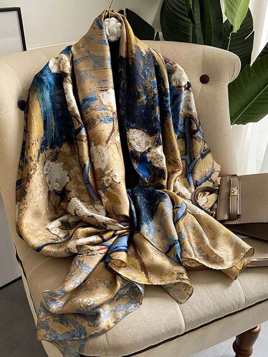 - アクセサリー レディース スカーフ 1枚 90x180cm サテン プリントロングスカーフ 滑り止めパールバックル付き、デイリース