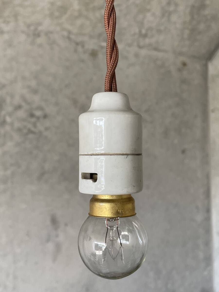 - T2. フランスアンティーク 吊り下げ ライト ソケット ランプ 陶器 仏 北欧 照明 アトリエ インダストリアル カフェ レトロ