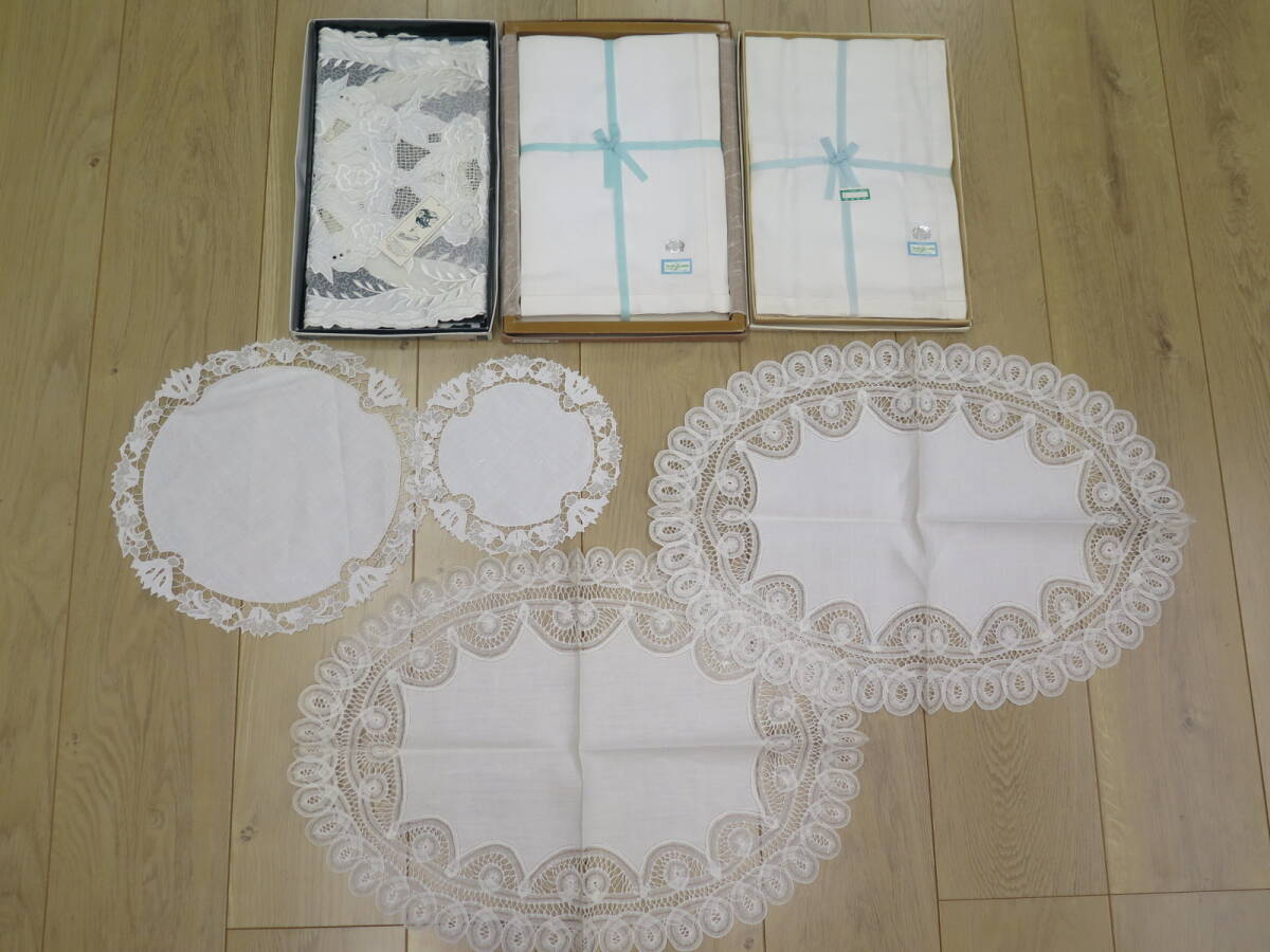 - 未使用保管品 ヴィンテージ アイリッシュリネンハンカチーフ タイシルクレース 刺繍ドイリーなどまとめて テーブルセンター 花瓶敷