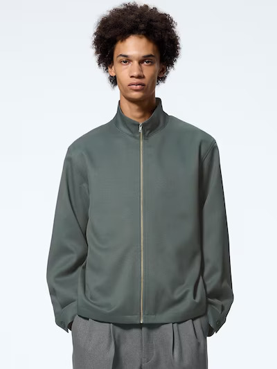 > GU ジップアップシャツ SW+E / Lサイズ OLIVE UG ジーユー ジャケット シャツ rokh ユニクロ UNIQLO パンツ