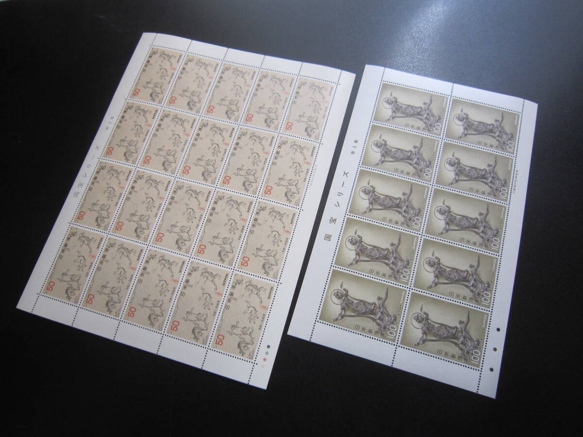 - ★国宝シリーズ 第3集 鳥獣戯画 雲中供養菩薩像 1977年★50円×20枚 100円×10枚 美品