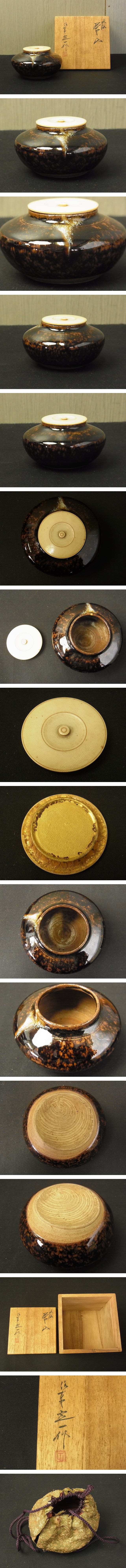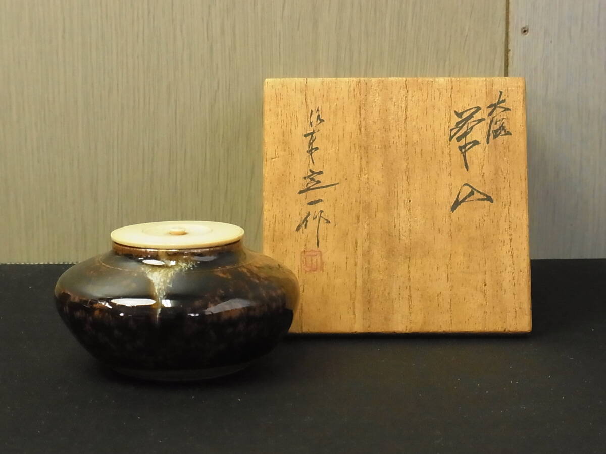 - t1772 蔵出 茶道具 洛東 桶谷定一 大海茶入 共箱 仕覆 陶芸 伝統工芸 茶器 骨董 陶磁