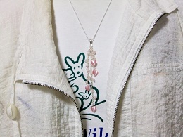 - ローズクオーツのオシャレなハートのロングシルバーネックレス