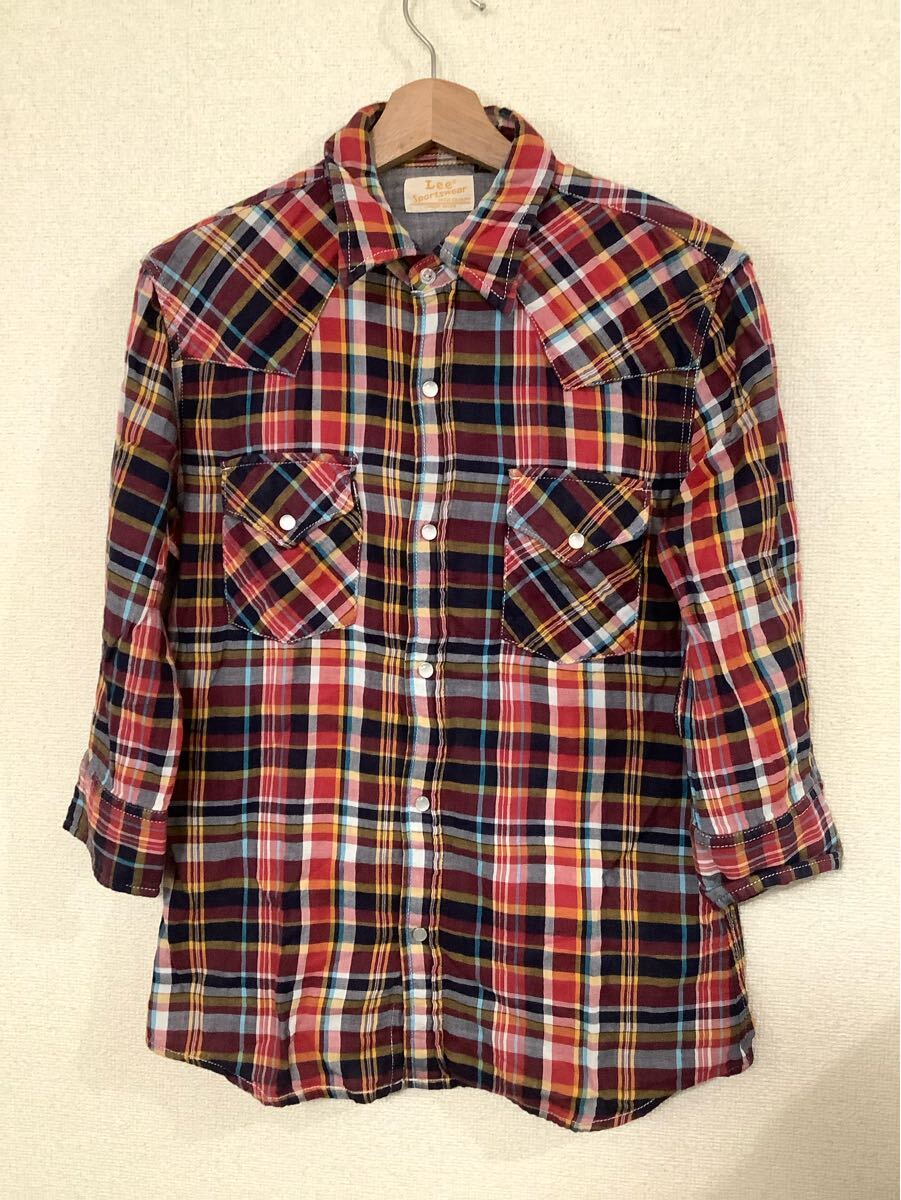 - Lee リー 七分丈 チェック柄 コットンシャツ レッド アメカジ カジュアル メンズ 古着 M
