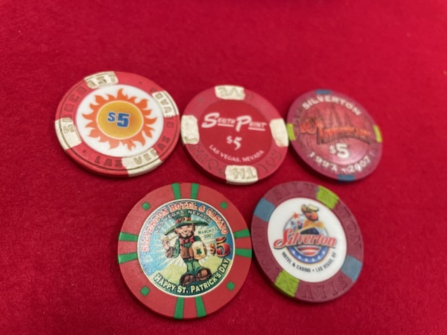 - C-38現状品 チップ 入手困難 本場海外 ラスベガスなど ヴィンテージ カジノチップ $5など ポーカーチップ ゴルフマーカー5枚セット
