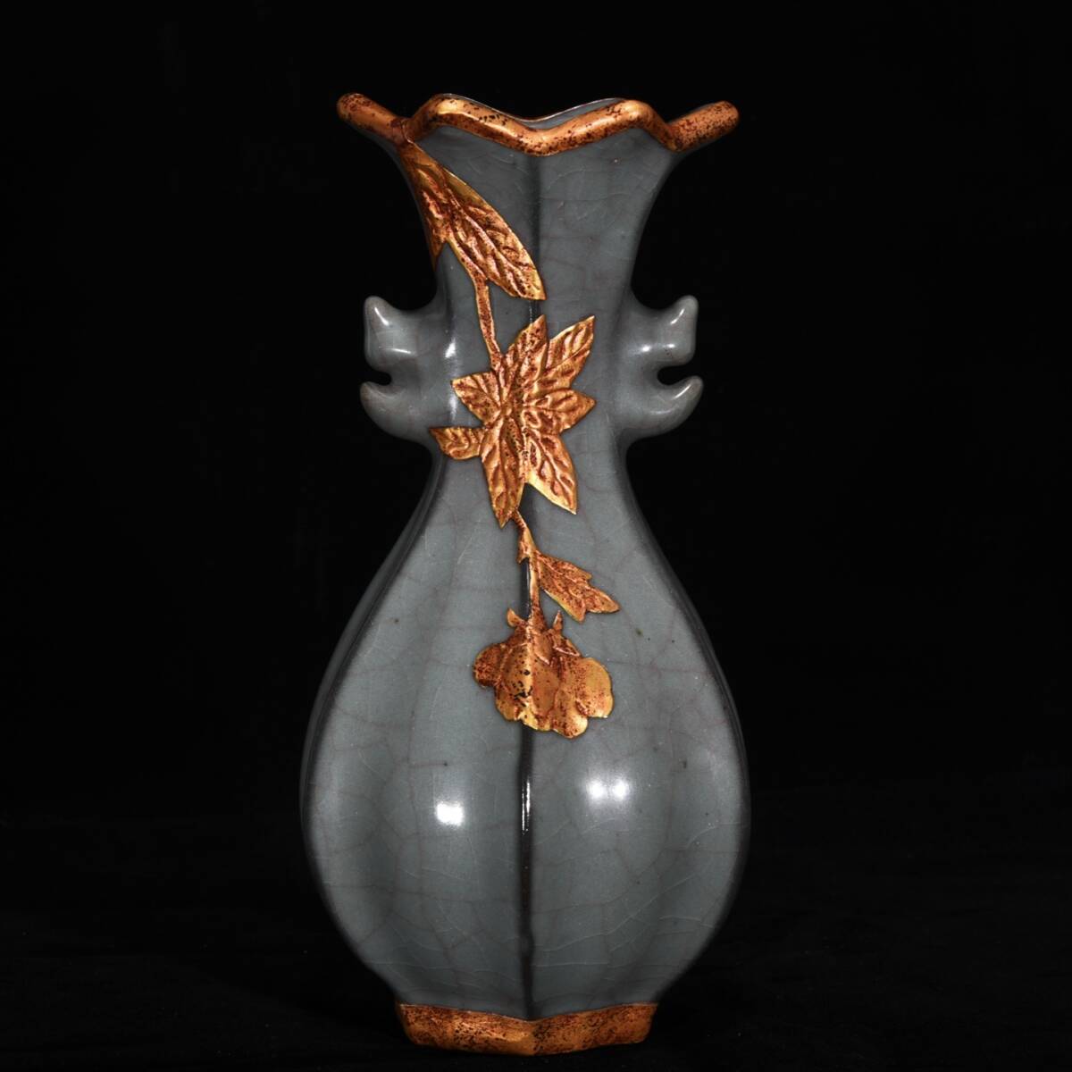 - 宋時代 古陶磁器 官窯 包口獣頭瓶 置物 賞瓶 極細工 古賞物 古美味 東洋彫刻 時代物 骨董 中国古美術
