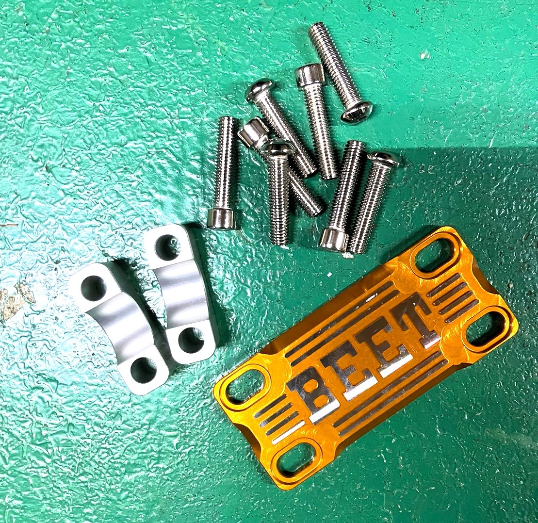 - ハンドル クランプ ブレース キット ロゴ有 金E/②中古 美品XJRハンドルポストZRXゼファーCB400SFジェイドBEETホーネットGSX400バリオス