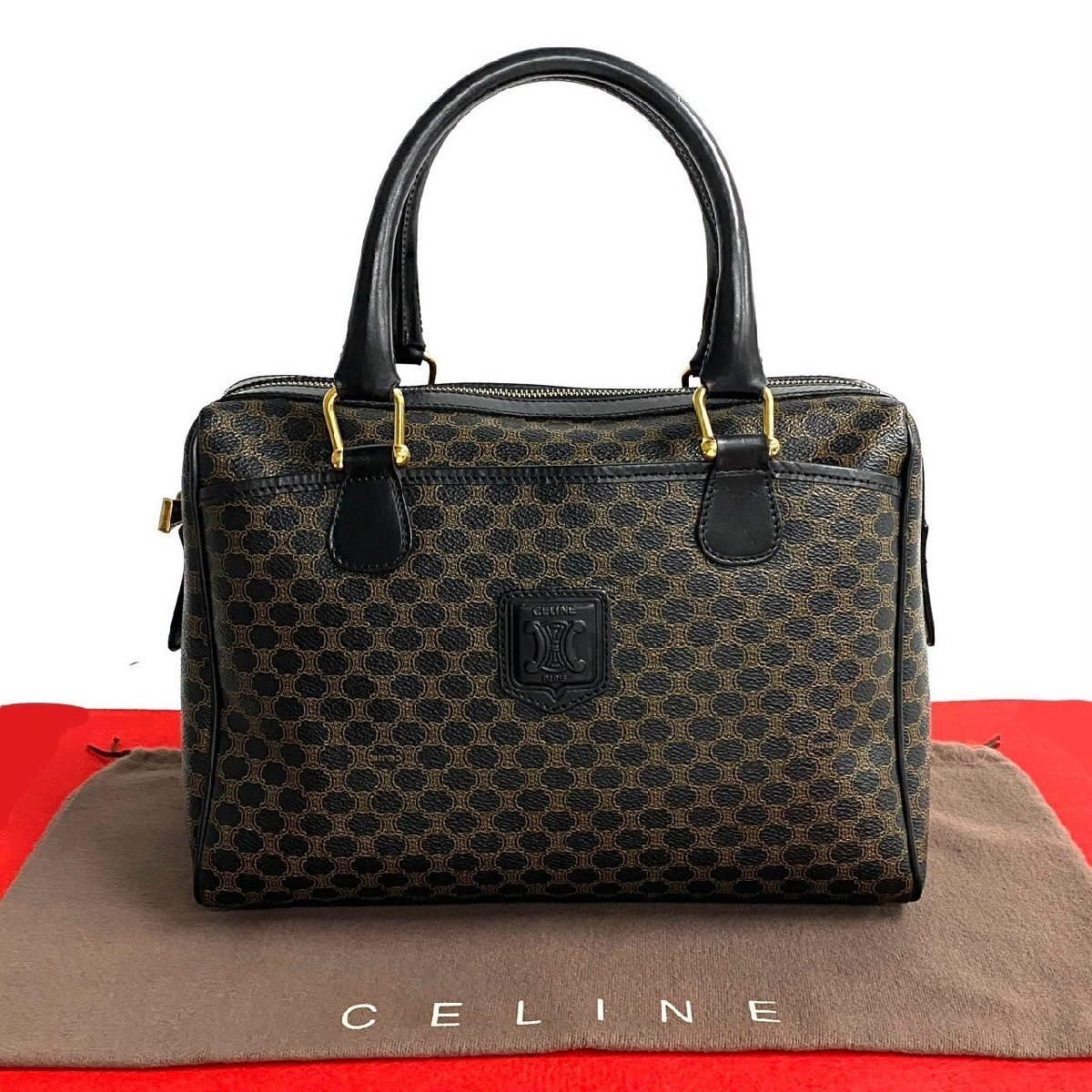 > 極 美品 CELINE セリーヌ マカダム ブラゾン トリオンフ 柄 レザー ハンドバッグ ミニ ボストンバッグ ブラック ブラウン 38188