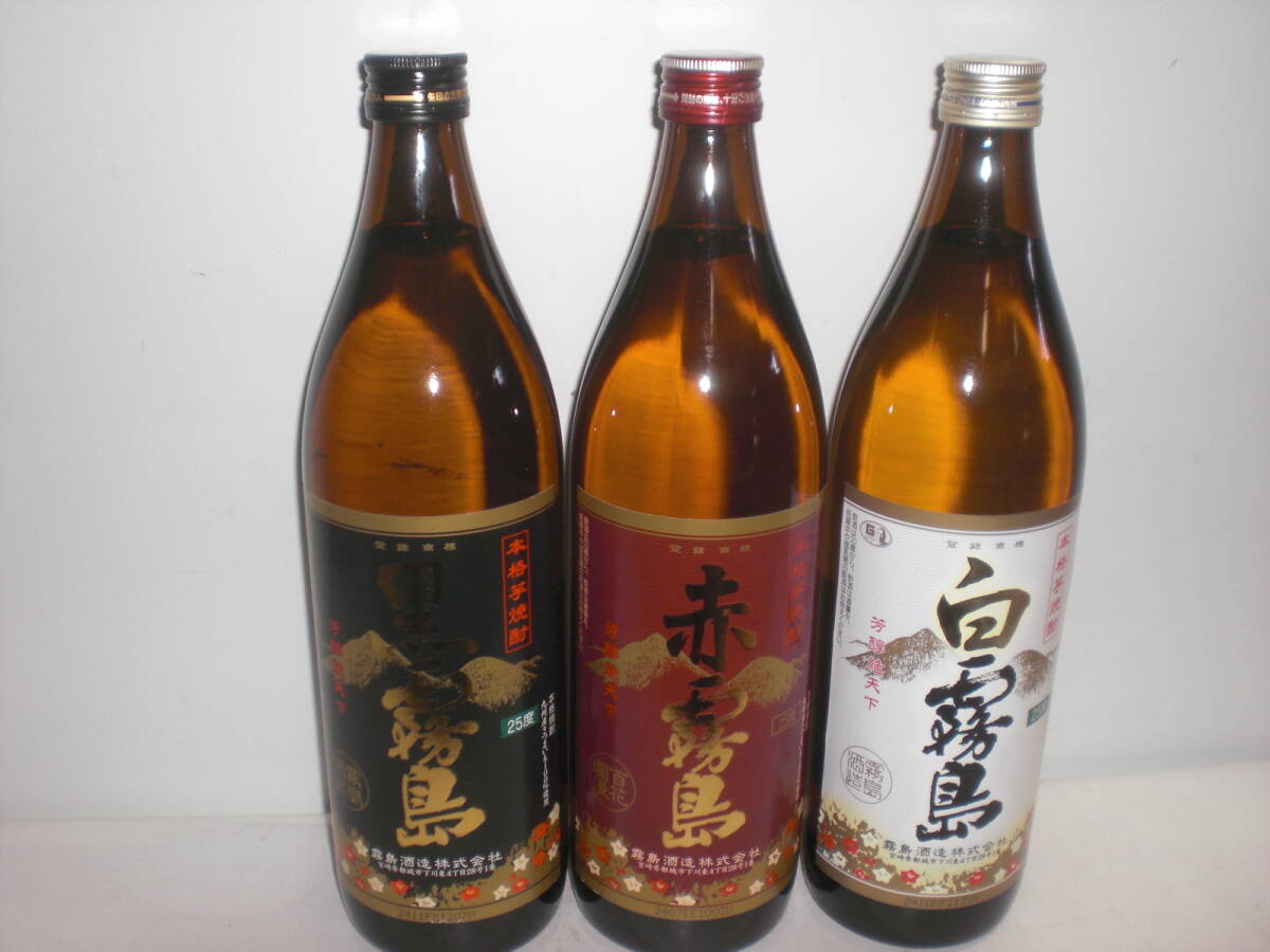 > 霧島酒造/黒霧島、赤霧島、白霧島25度900ミリ3銘柄セツト価格化粧箱付き