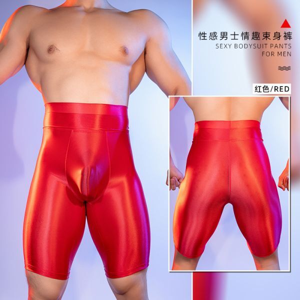 - 161-109-18 入荷1点のみ! メンズ 光沢シルキー ロングスパッツ【レッド,F】男性 セクシー パンツ ボクサーブリーフ アンダーウェア.1