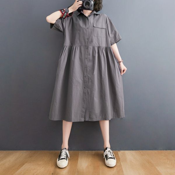 - ★★★レディース ワンピース シャツワンピー フレアスカート 半袖 FX48