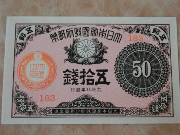 - ★ 大正小額紙幣50銭 大正8年 極美品 ★ No.309