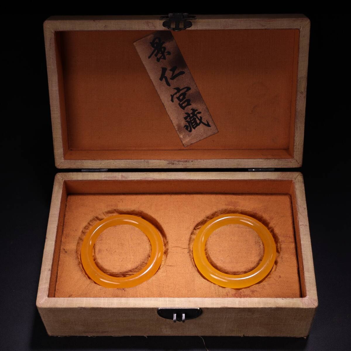 - 清 宮廷御製 古黄宝石彫 黄玉腕輪 漆器盒 箱付 極細工 東洋彫刻 骨董品 古賞物 中国古玩 中国古美術