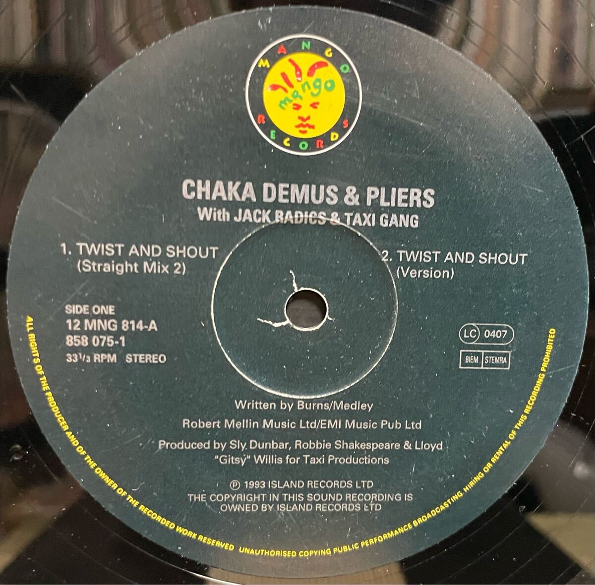 - ビートルズの大ヒット TWIST AND SHOUT / CHAKA DEMUS & PLIERS With JACK RADICS & TAXI GANG ナイスカヴァージャケット無し12インチ
