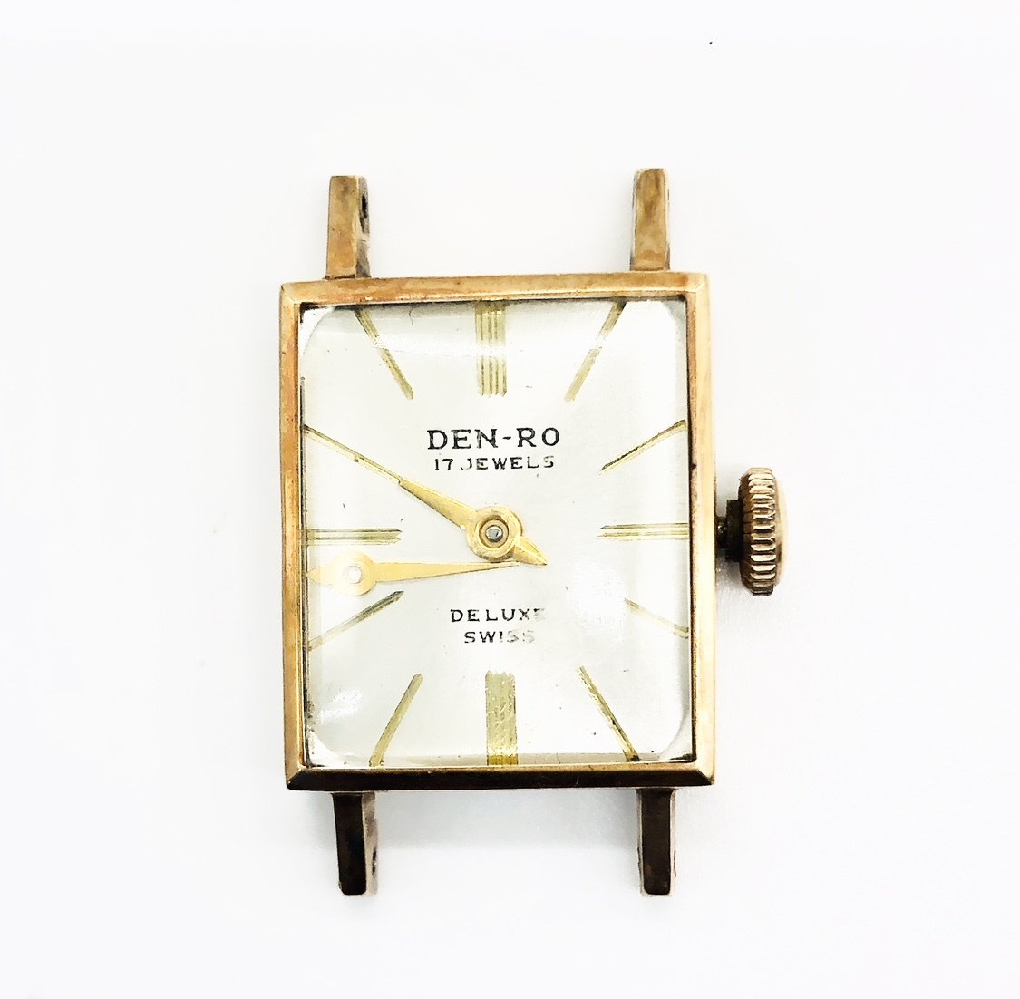 > 【ジャンク品】DEN-RO デンロ 17 JEWELS DELUXE SWISS K18 手巻 腕時計 ベルト無し【中古】 / io-4449-sw