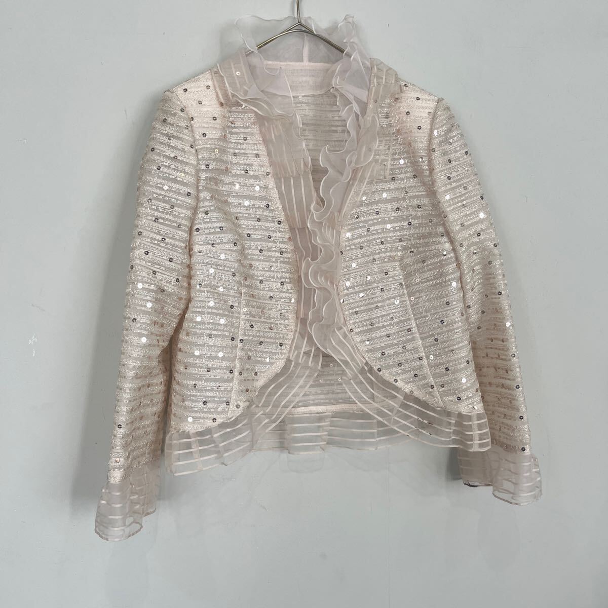 - Igin イギン zibeline ノーカラージャケット 長袖 ジャケット 刺繍 ドレスジャケット 肩パッドあり スパンコール レディース 白系 9AR