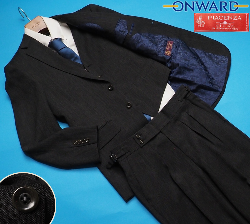 - 新品28.4万円 オンワード樫山 Royal Custom Selflex 日本製 春夏『PIACENZA 1st CLASS 伊製生地』スリーピース スーツY96(A6)濃灰 2660037