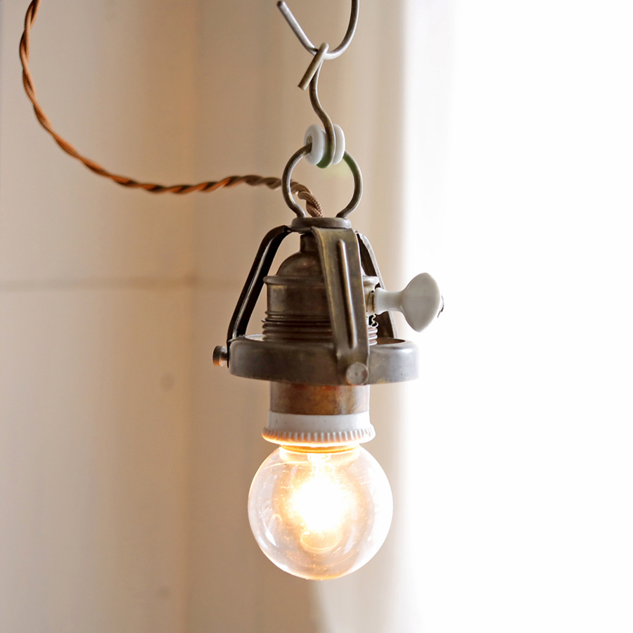 > 仏 1920年 白陶器スイッチ フック付 フランスアンティーク 真鍮 ソケット ランプ/ ブラス 吊り下げ イギリス A* 飴色 真鍮 ソケット GT