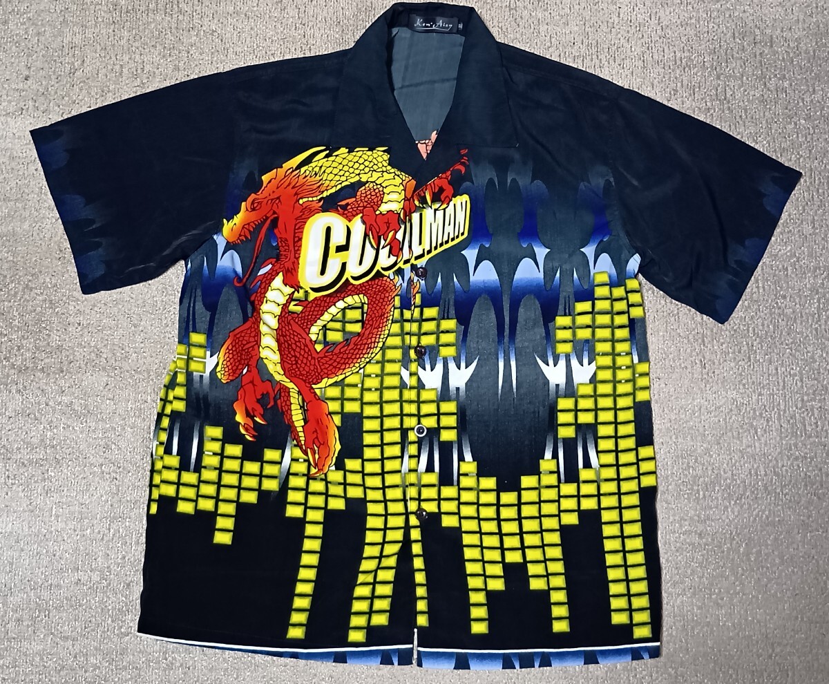 - ◎超美品◎激シブ◎ビッグサイズ◎Ken Aisy COOLMAN ドラゴンプリントオープンカラー半袖ハワイアンシャツ アロハシャツ Size XL ブラック