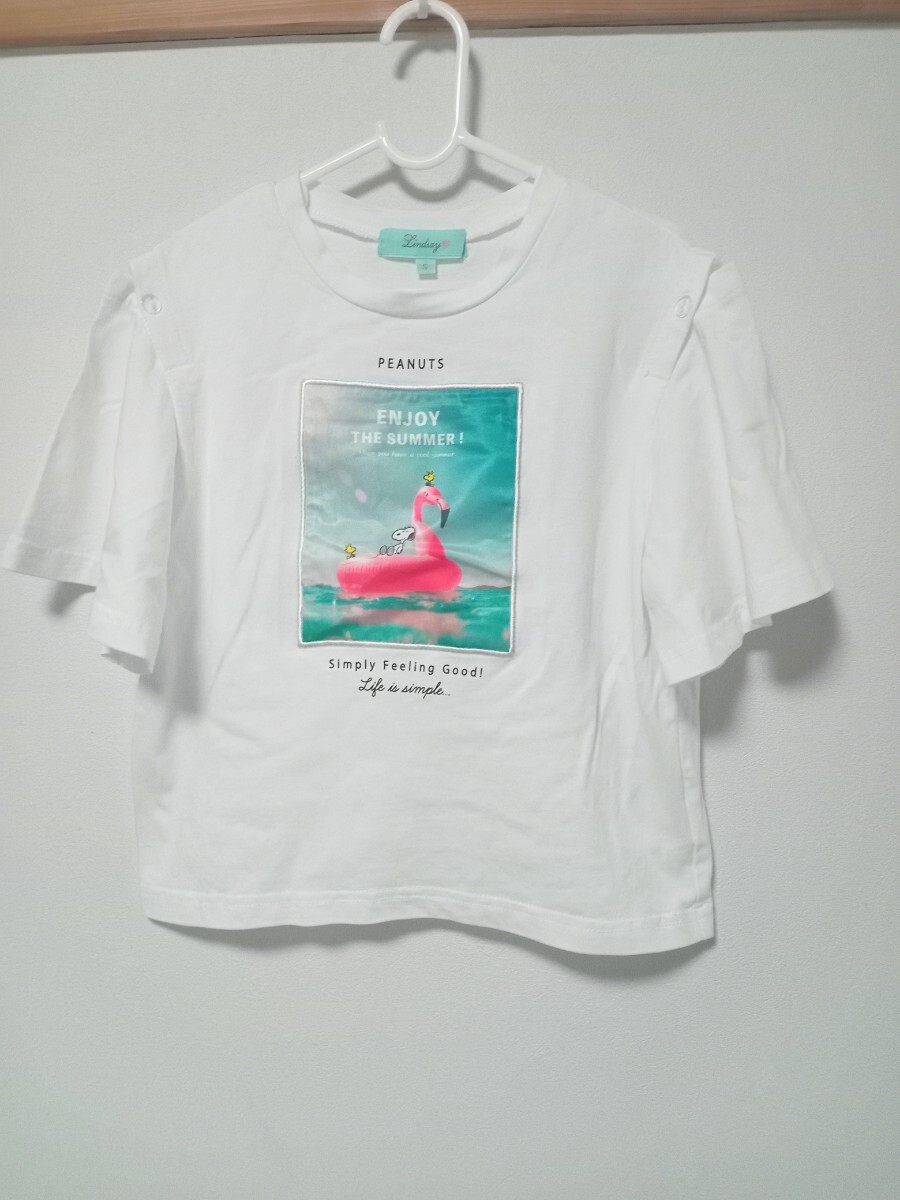 - 【美品】Lindsay(リンジィ)肩開き 転写プリント 半袖 Tシャツ S(140)スヌーピー ピーナッツ