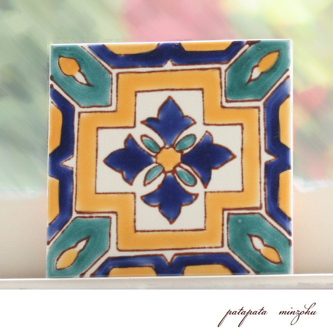 > チュニジアタイル 3C2 手描き タイル S チュニジア モロッコ テラコッタ