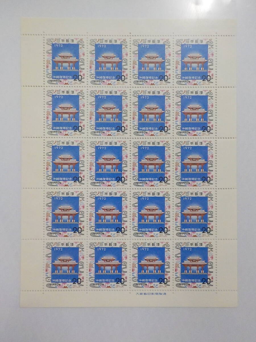 - 沖縄復帰記念 1972年 守礼門と紅型 / 20円切手シート 未使用