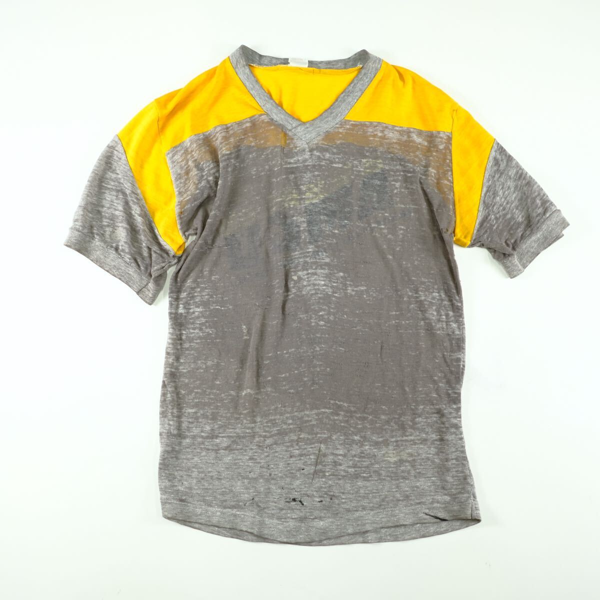 - 1960s ビンテージ 襤褸 Tシャツ ボロ フットボール ダメージ 古着屋 USA製 ぼろぼろ フェード 70s 80s シングルステッチ