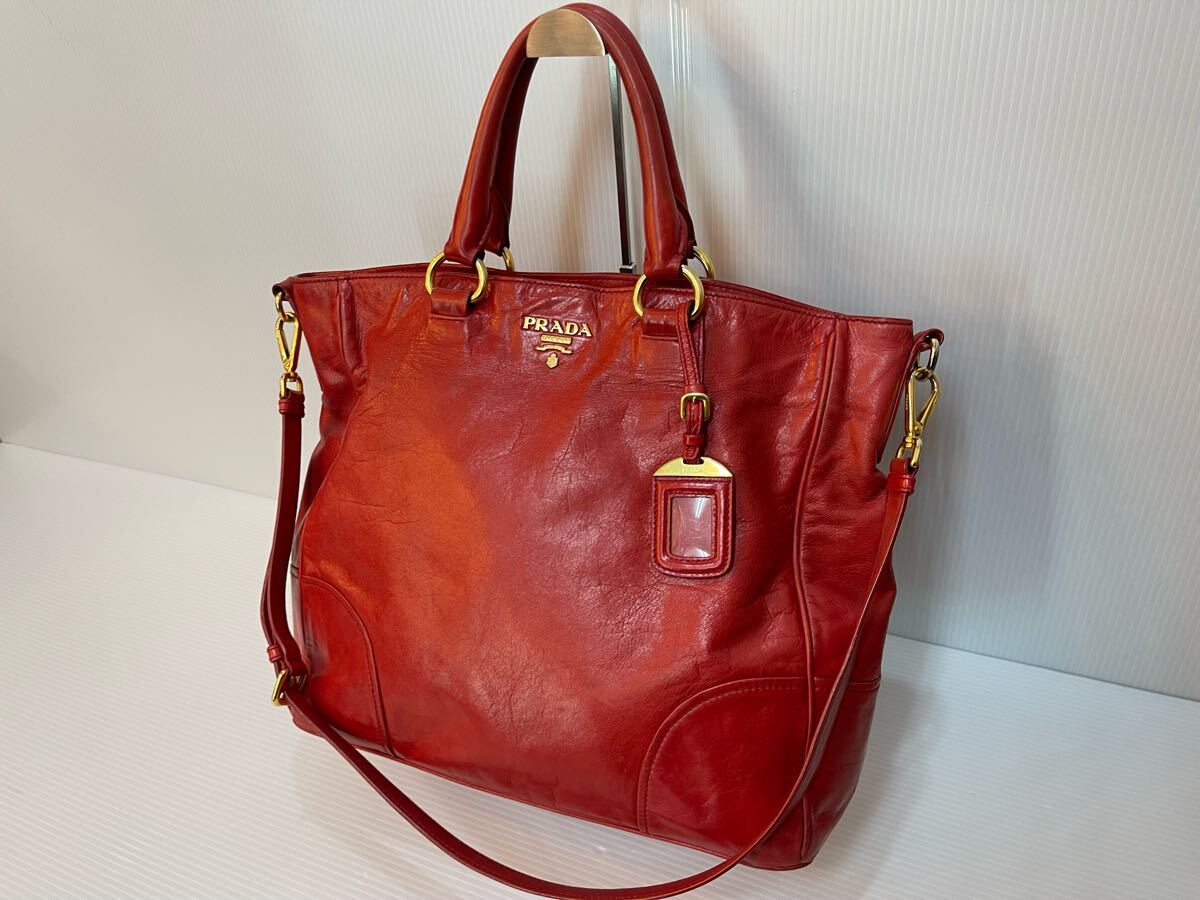 > 524 PRADA プラダ BN2326 VITELLO 2way トートバッグ ショルダーバッグ ハンドバッグ レッド 赤 レザー ホック開閉式 正規品