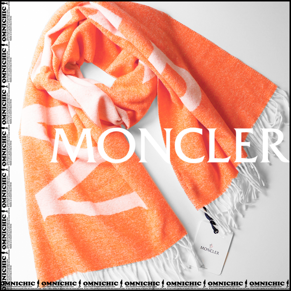 - 贅沢大判220cm全面ロゴ■国内正規品/新品【MONCLER】モンクレール抜群の高級感/ウールビックロゴフリンジストール/220cm×53cm/オレンジ系