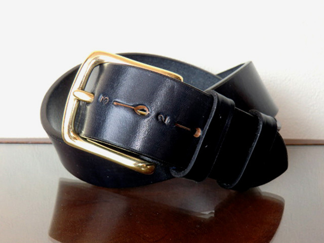 > 新品JabezCliffジャベツクリフ レザーベルト38mm ダークネイビー32inch パラフィン加工ロウびき