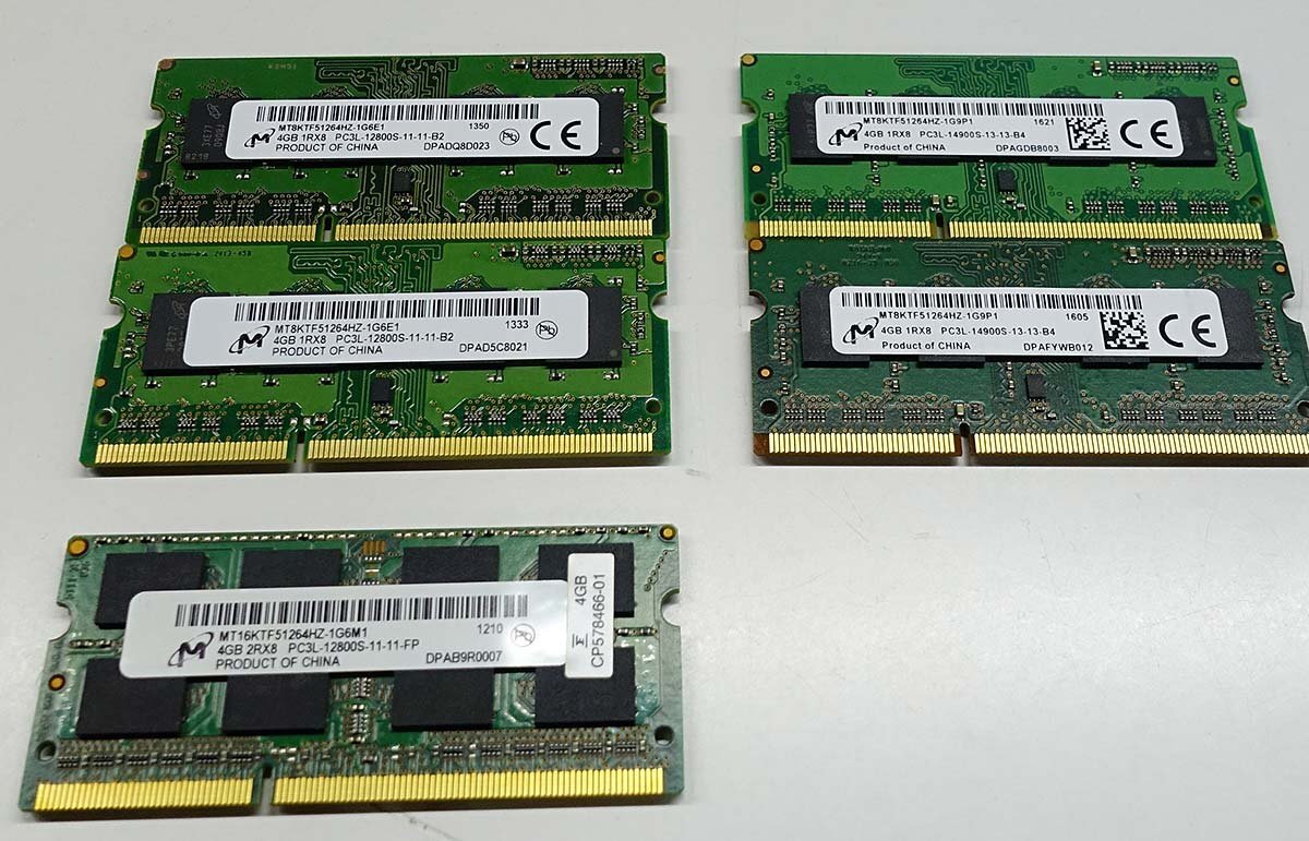 - クリックポスト 中古メモリ 5枚セット Micron 4GB/PC3L/DDR3L 12800S 14900S 1Rx8 2Rx8 混合 ノート用 マイクロン S042206