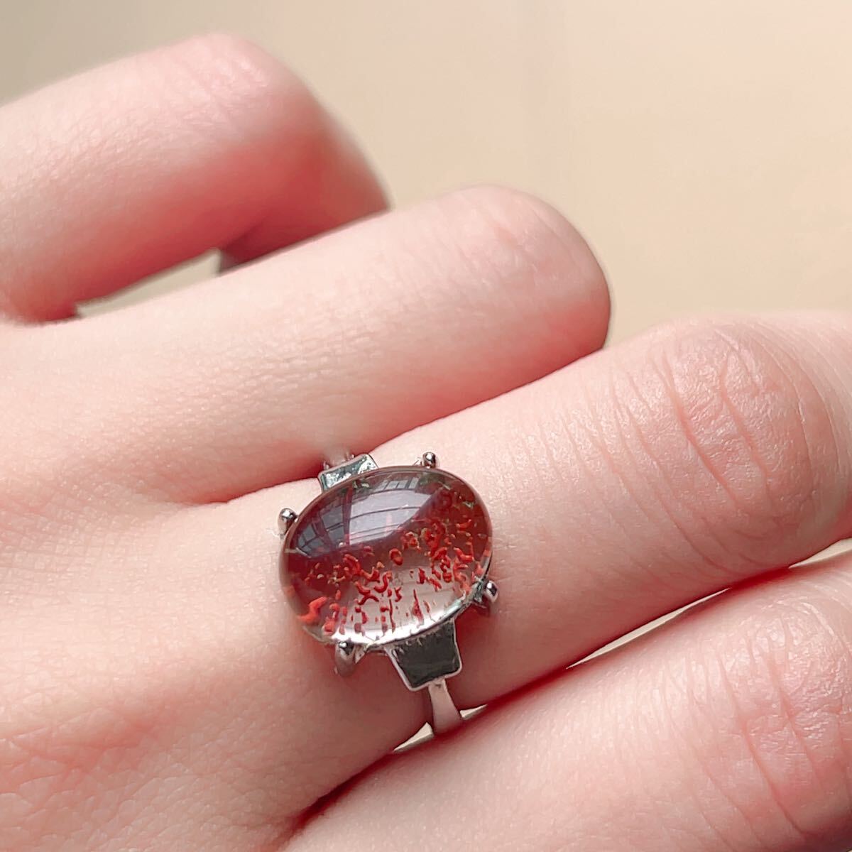 > ◇高い透明度◇レッドガーデンクォーツ(庭園水晶)◇指輪◇リング◇フリーサイズ◇天然石◇パワーストーン◇巾着袋付き◇033R4222