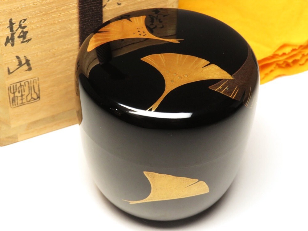 - 【9838】明治~大正 茶道具 銀杏の図 中棗 作有り(初品・買取品)