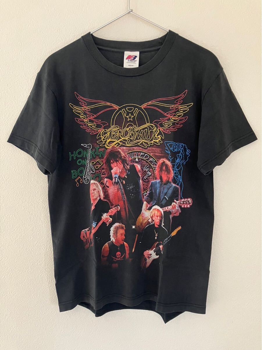 > エアロスミス 半袖Tシャツ ブラック×(両面プリント) 2004ツアーT Mサイズ MADE IN JAPAN ロックT バンドT