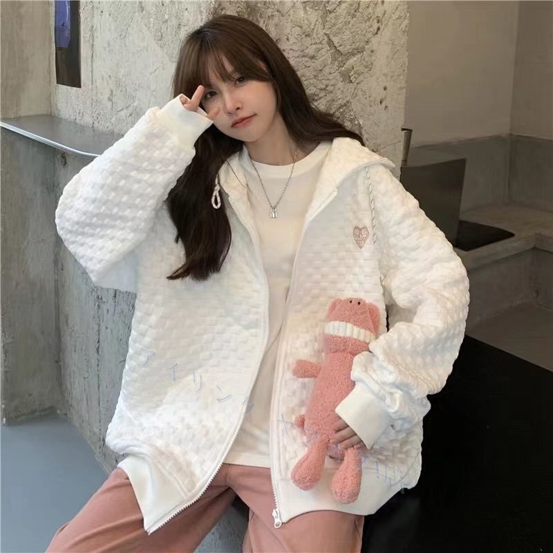 > パーカー レディース トップス チェック ファスナー付き フード カジュアルウエア オーバーサイズ ゆったり ホワイト2xxlお色選択可