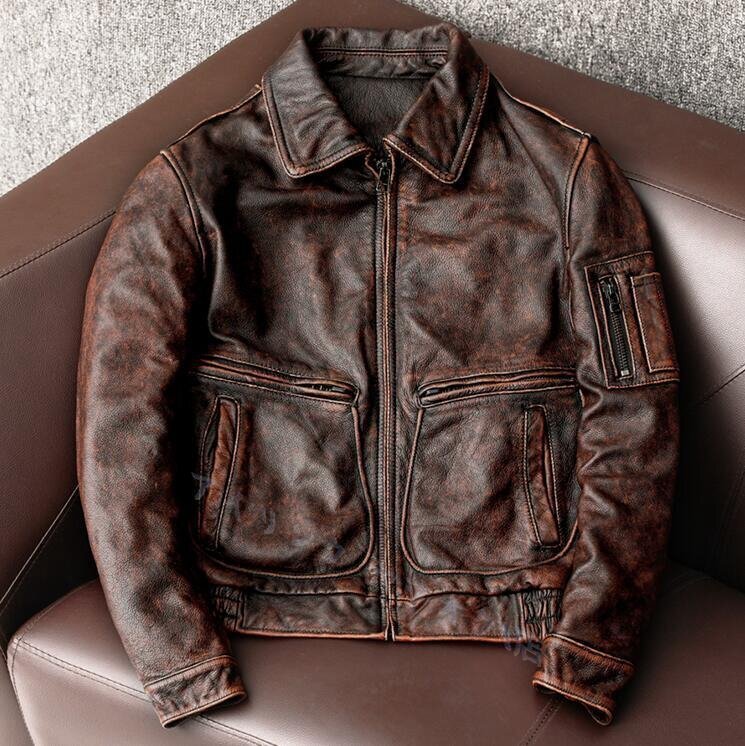 - レザージャケット A2フライトジャケット 上品 ユーズド加工 本革 牛革 ライダースジャケット 革ジャン S~5XL