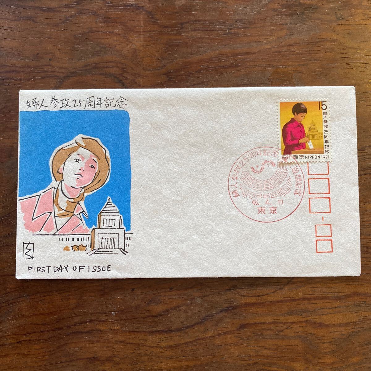 - [猫]日本切手 初日カバー 婦人参政25周年記念