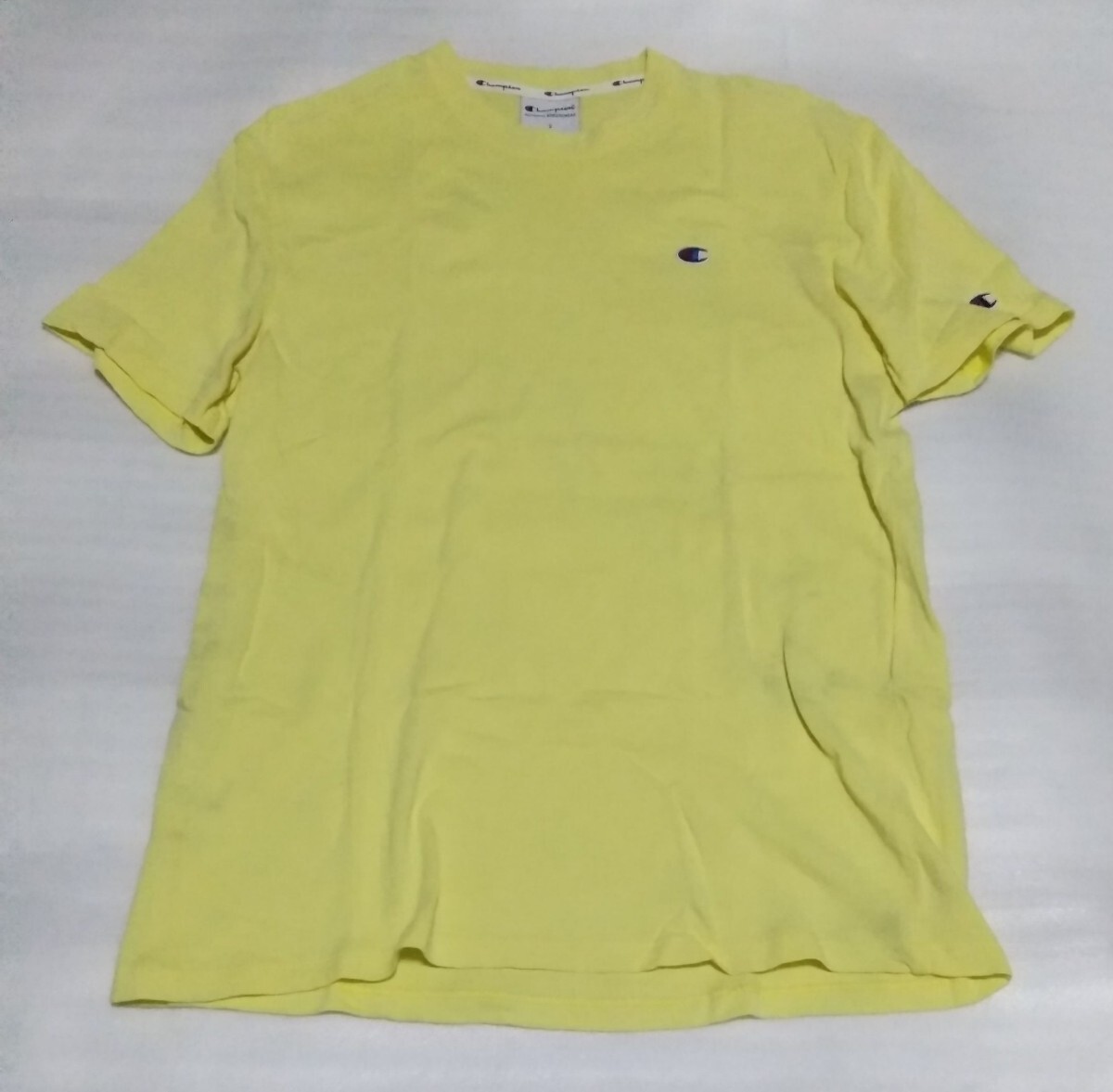 > ☆Champion.COM TEEサイズS(ASIA M)半袖TシャツCロゴW無地スポーツ黄レモン色AUTHENTICファッションATHLETICWEARウェア洗濯済 チャンピオン